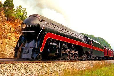 Norfolk & Western 4-8-4 puzzle, based on an original photo by Jack Bejna (photo copyright Jack Bejna -- used with permission). Photographed in Virginia, August 1, 1987.