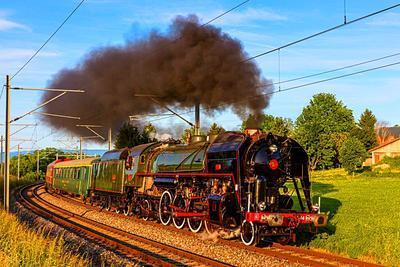 SNCF 2-8-2 puzzle, based on an original photo by Axel Bozier (photo copyright Axel Bozier -- used with permission). Photographed at Mörschwil, Switzerland, June 8, 2019.