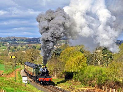 Great Western Railway 4-6-0 puzzle, based on an original photo by John Bowler (photo copyright John Bowler -- used with permission). Photographed at Bewdley, United Kingdom, April 23, 2018.