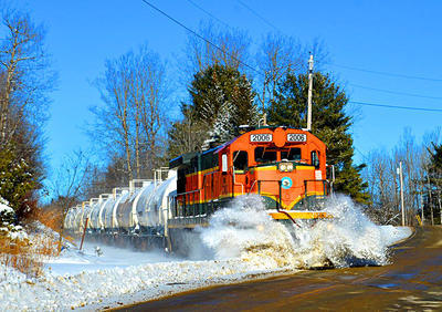 Central Maine and Quebec Railway B23-7 puzzle, based on an original photo by Jeff J. Bray (photo copyright Jeff J. Bray -- used with permission). Photographed at Hampden, Maine, January 20, 2020.
