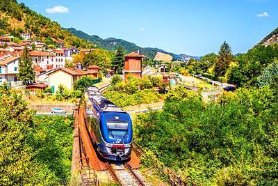 Trenitalia ALn 501 puzzle, based on an original photo by Dmitry Lapkin (photo copyright Dmitry Lapkin -- used with permission). Photographed at Marradi, Italy, September 1, 2016.