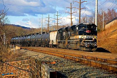 Norfolk Southern SD70ACe puzzle, based on an original photo by Robert Palmer (photo copyright Robert Palmer -- used with permission). Photographed at Reading, Pennsylvania, April 4, 2015.
