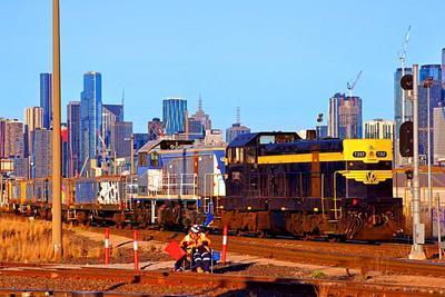 Southern Shorthaul Railroad T Class puzzle, based on an original photo by Ian Green (photo copyright Ian Green -- used with permission). Photographed at South Dynon, Melbourne, Australia, August 8, 2022.