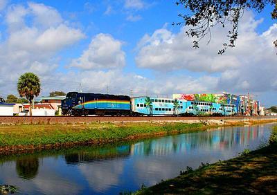 Tri-Rail F40PH-2C puzzle, based on an original photo by Bob Pickering (photo copyright Bob Pickering -- used with permission). Photographed at West Palm Beach, Florida, February 19, 2023.