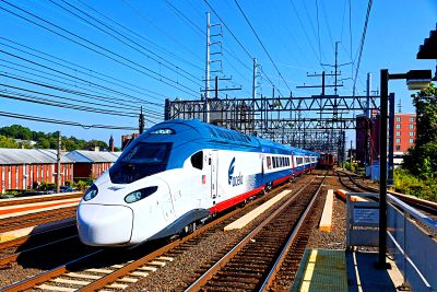 Amtrak Acela 2 puzzle, based on an original photo by Christopher Gore (photo copyright Christopher Gore -- used with permission). Photographed at Norwalk, Connecticut, September 14, 2025.